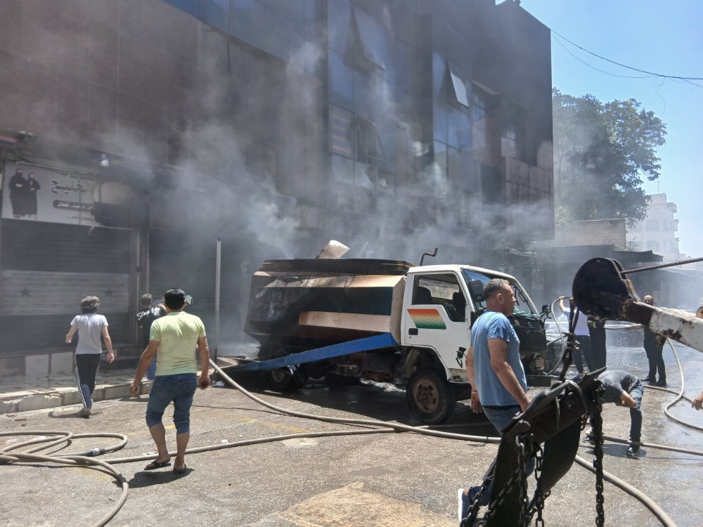 احتراق 6 سيارات و11 محلاً تجارياً في مجمع السيتي سنتر في حماة