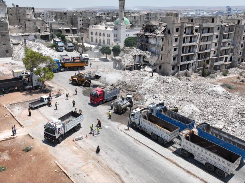 وفي أيار الماضي، انطلقت أعمال ترحيل الأنقاض في مدينة إدلب، وذلك ضمن خطة حكومية لتحسين الواقع الخدمي للمدينة التي عانت القصف المكثَّف من النظام البائد في السنوات الماضية.
