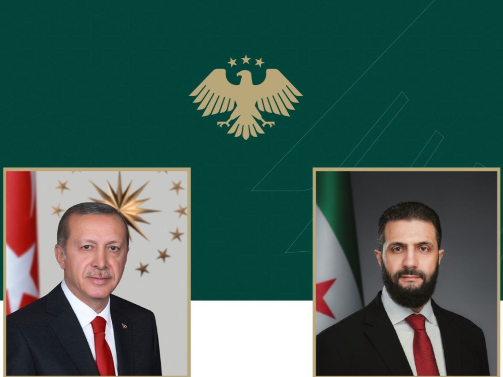بحث السيد الرئيس أحمد الشرع هاتفياً مع نظيره التركي رجب طيب أردوغان آخر تطورات الأوضاع في سوريا، والجهود الرامية إلى تعزيز الأمن والاستقرار في المنطقة.