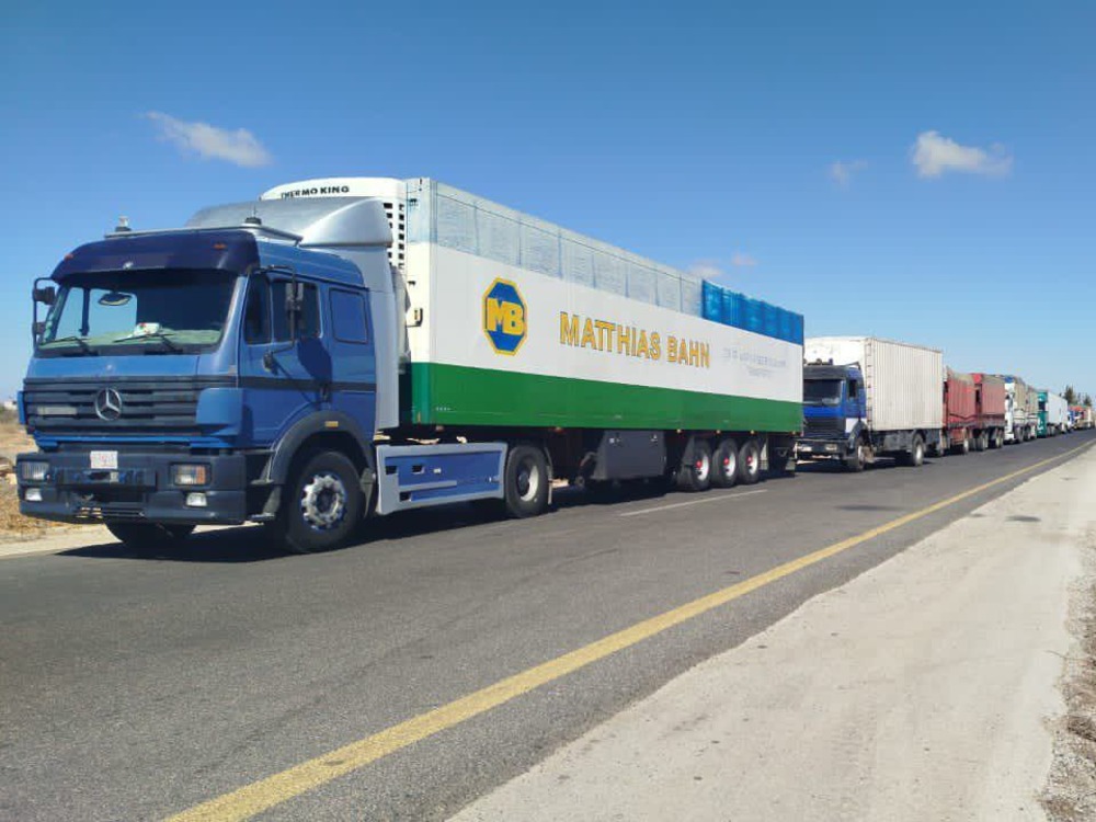 دخلت قافلة تجارية تضم 110 شاحنات محمَّلة بالسلع الأساسية من مواد غذائية وصناعية وخضروات إلى محافظة السويداء، الأربعاء 1 تشرين الأول، بتوجيه من محافظ السويداء الدكتور مصطفى البكور.