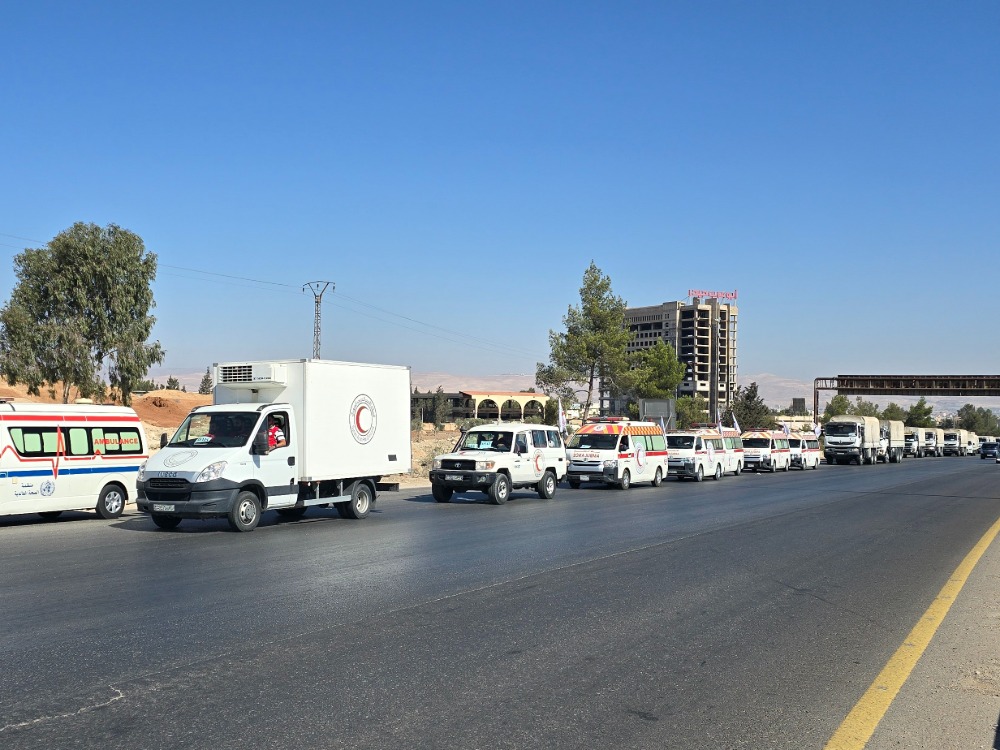 برفقة وفد وزاري.. قافلة إنسانية تنطلق باتجاه محافظة السويداء